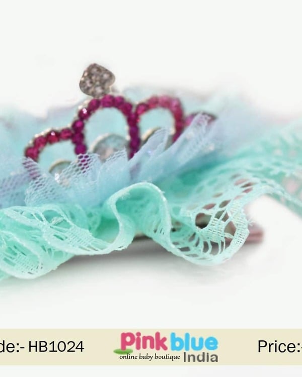 Buy Online Sea Green Designer Hair Clip with Crown and Net for Girls