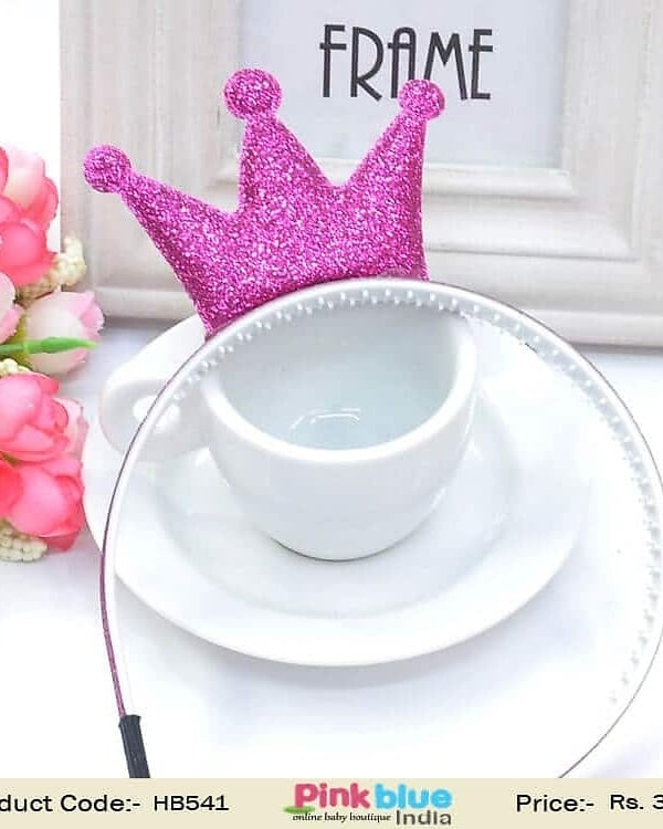 Shimmery Hot Pink Hair Band with Beautiful Crown for Newborn Princess