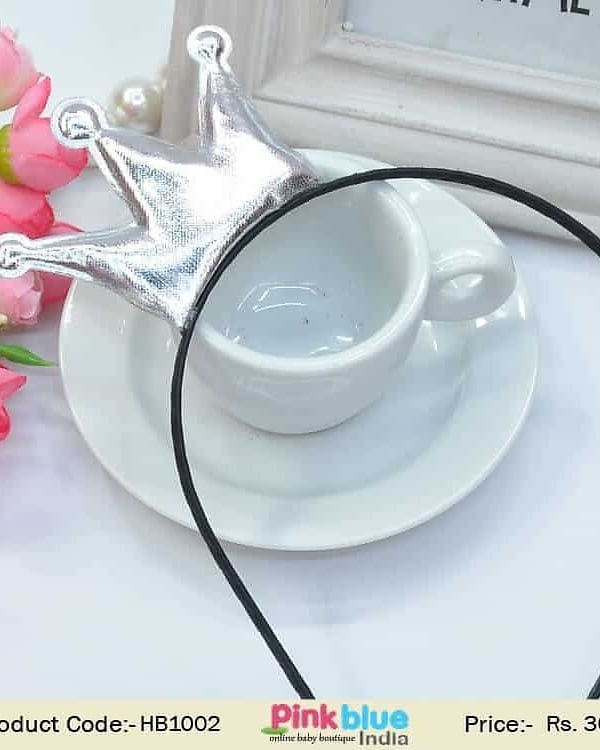 Sleek Black Hair Accessory for Girls in India with Silver Crown