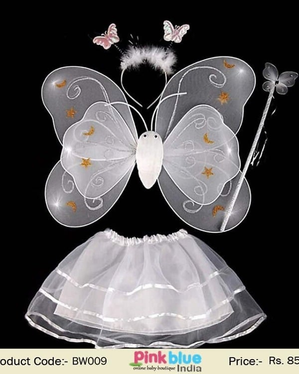 Baby Kids Butterfly Fairy Fancy Dress Costume Wings, Wand & Hairband 4 Pcs Set