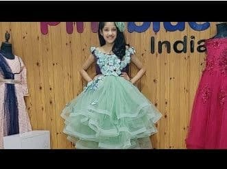 Have her celebrate her birthday in great style with this green colored ankle length gown made using high quality net. This party wear off-shoulder gown for 1 to 13 year old girls is embellished with flowers on the bodice. The layered flare adds on to the volume and grace and it comes with a complimentary hair accessory to complete her look for the party season.