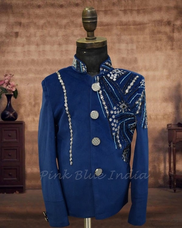 Party Wear Baby Boys Tuxedo in Blue (6 Months to 12 Years)