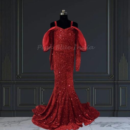 Maroon Velvet Sequence Fish Cut Dress for girls of all ages. Dive into the latest trends and find the perfect fish cut party wear dress for baby girls.