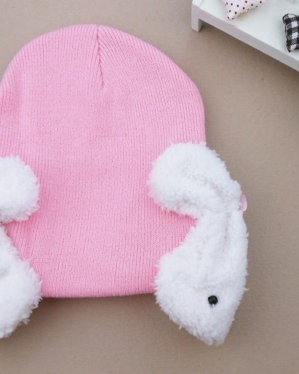 1 review for Baby Pink Winter Cap with White Bunnies Covering Ears for Infants in India