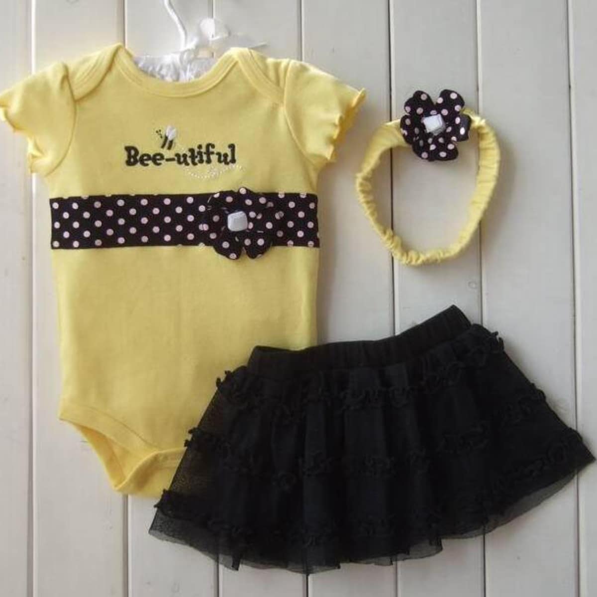 Get your hands on the prettiest and most stylish bodysuit up for sale for your cute little baby girl. The fashionable designer toddler girls outfit comes with a yellow bodice with black ruffle skirt and a matching hair band. Shop online in India this exclusive bodysuit clothing for your baby girl and dress her beautifully.