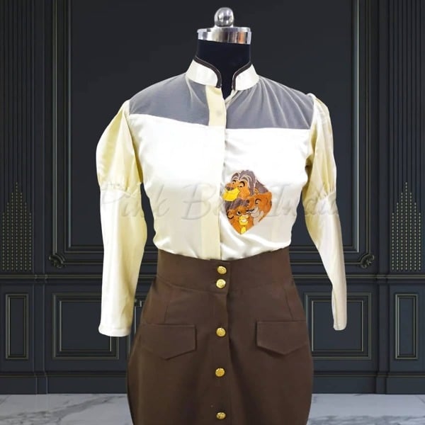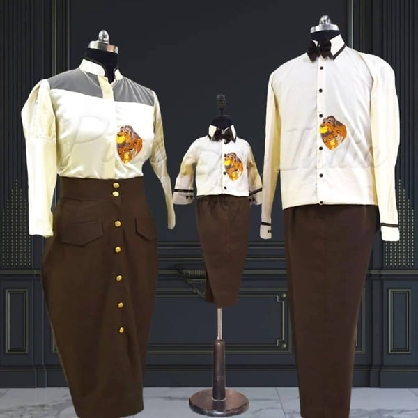 Dress up as a family for the Lion King themed birthday party with this brown colored Lion King themed family outfit for mom, dad and kid. This is a combination of Lion King themed embroidered shirts for father mother and son and matching bottoms to make sure that everyone is coordinated. This cotton combination makes a perfect way to make the birthday celebrations all the more fun and fashionable.