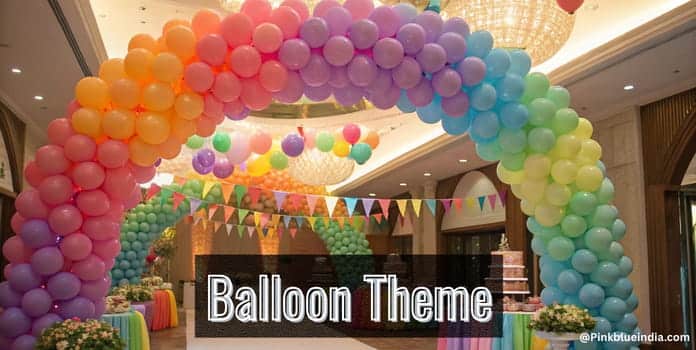 You can be very simple yet interestingly creative with balloon party theme. Have colorful balloons with polka dots, different shapes and designs decorated all over the place. Follow a color combination or style to do the party place and bring a smile to your guests with happy balloons all over.