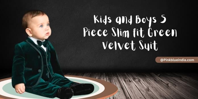 Kids and Boys 5 Piece Slim fit Green Velvet Suit