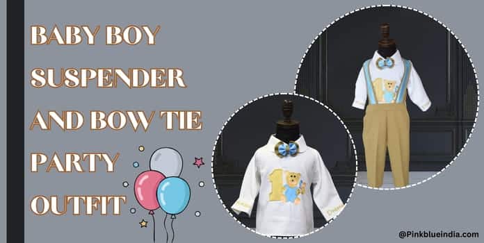 A jazzy baby boy suspender outfit comprising of a pair of plaid pants, cap and bowtie matched with white shirt and suspenders to ensure best of comfort and fitting as they play and run around. This format party outfit for kids makes an elegant baby boy birthday dress to gift him on his special day.