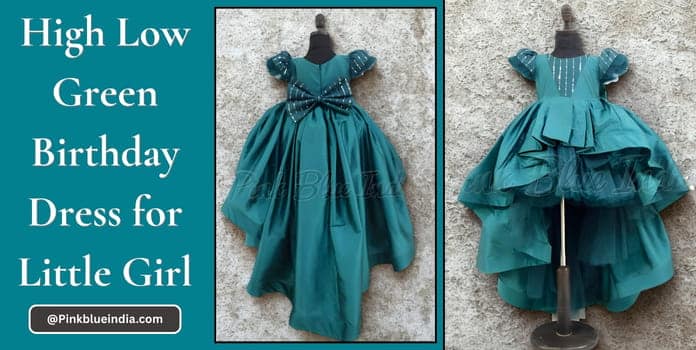The high low kids party dress is a beautiful way to add more style to the simplest of the baby girls party dresses. This green coloured kids party wear dress is an ideal combination of great style and gorgeousness for her birthday.