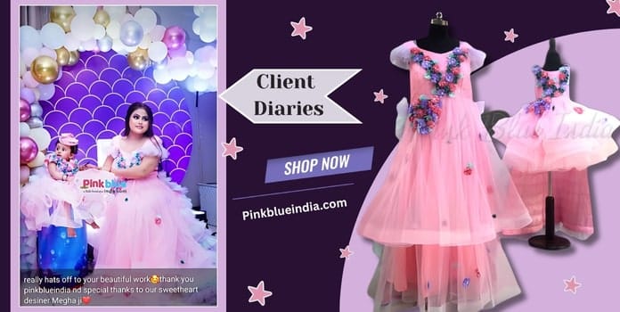 Our client Anisha wanted something exclusive as well as gorgeous for her daughter’s birthday. And because her daughter loves pink and flowers, she strictly wanted something that can be a combination of both. Moreover, she desired for gowns that are not too heavy to wear. That’s the reason we chose net to design the gowns and we used flowers on the outfits to make sure that the birthday girl enjoys wearing her dress as well loves her mom dressed in the same.