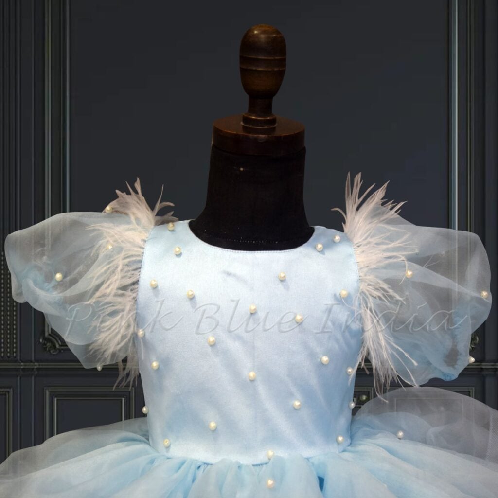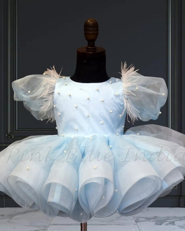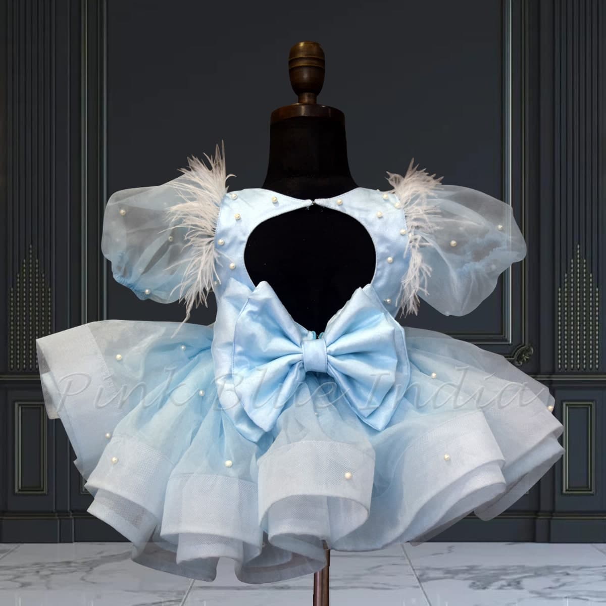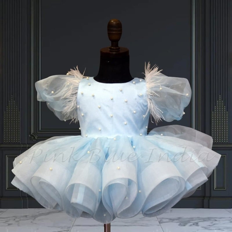 Celebrate your baby’s 1st birthday with the exclusive, customized, and handmade Little Princess Puff Dress in luxurious organza fabric.