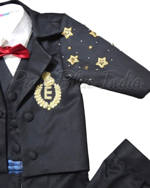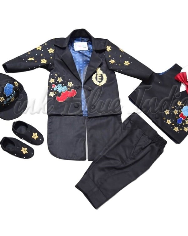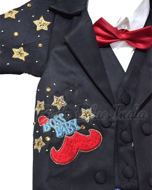With this stunningly cute and smart black Boss Baby themed personalized 6 piece tail coat set, you don’t have to look anywhere else. Make his birthday celebrations all the more special with this handsome outfit that consists of shirt, paint, coat, bow tie, shoes and caps. It is a perfect ensemble for boys of age 0 to 6 months to 12 years of age.