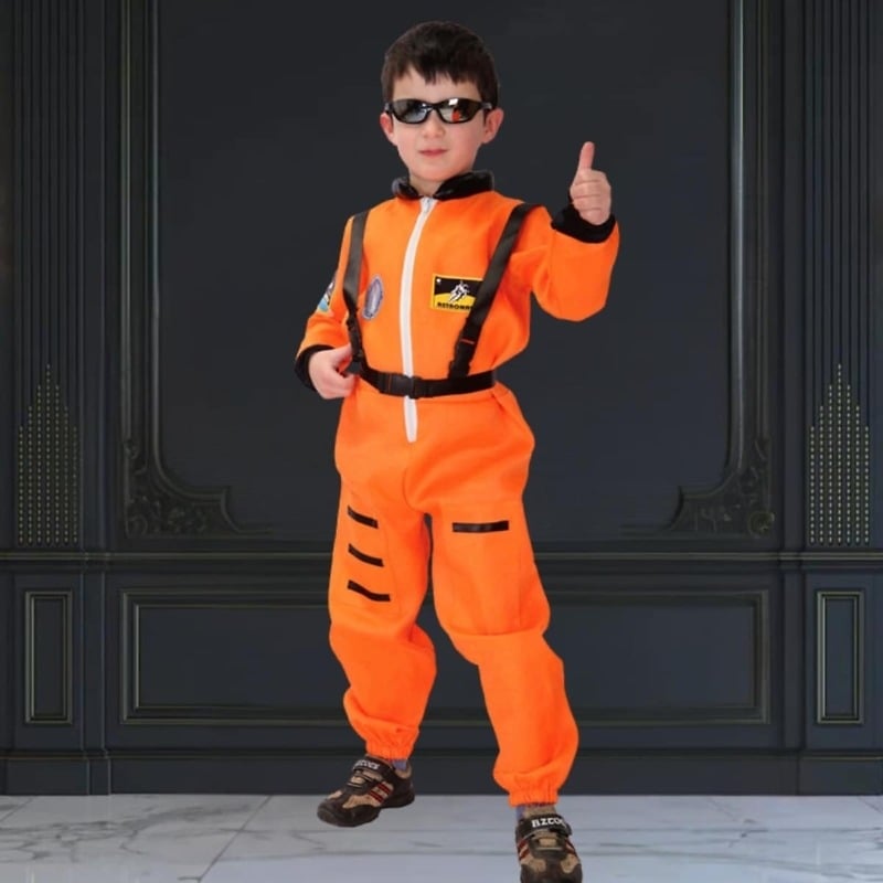 Fabulous spaceman fancy dress costume for children in bright orange is a one piece dress to spice up stage performances, storytelling competitions, book weeks, Halloween dress ups etc. This orange astronaut themed party outfit promises a perfect spaceman look for kids in India. Shop online this unique boys’ fancy dress to dress your little one for impressive look!!!
