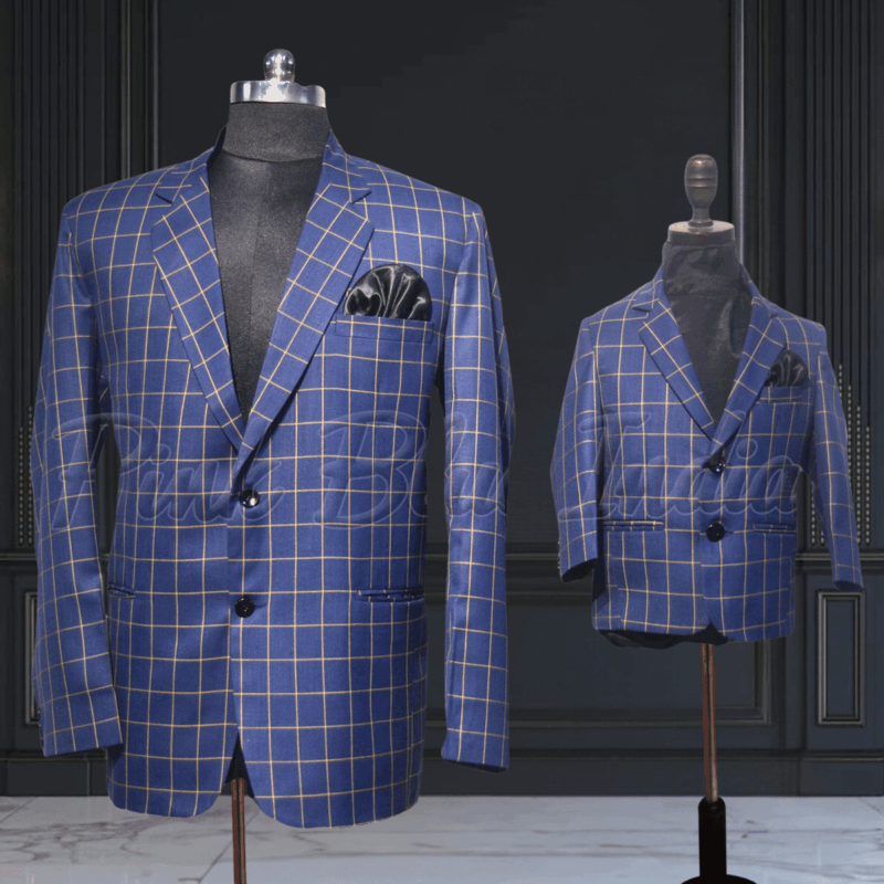 The father and son duo is going the best dressed in these blue colored checked blazers for parties, dinners and weddings. This coat suit has been designed using TR fabric and makes a wonderful pick to dress formally or semi-formally in something unique. Have the two men in your life dressed in the simple and smart blazers that can be matched with any shirt and pants.