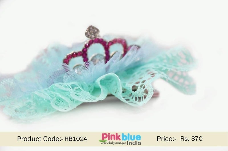 1 review for Buy Online Sea Green Designer Hair Clip with Crown and Net for Girls