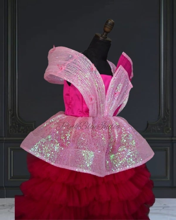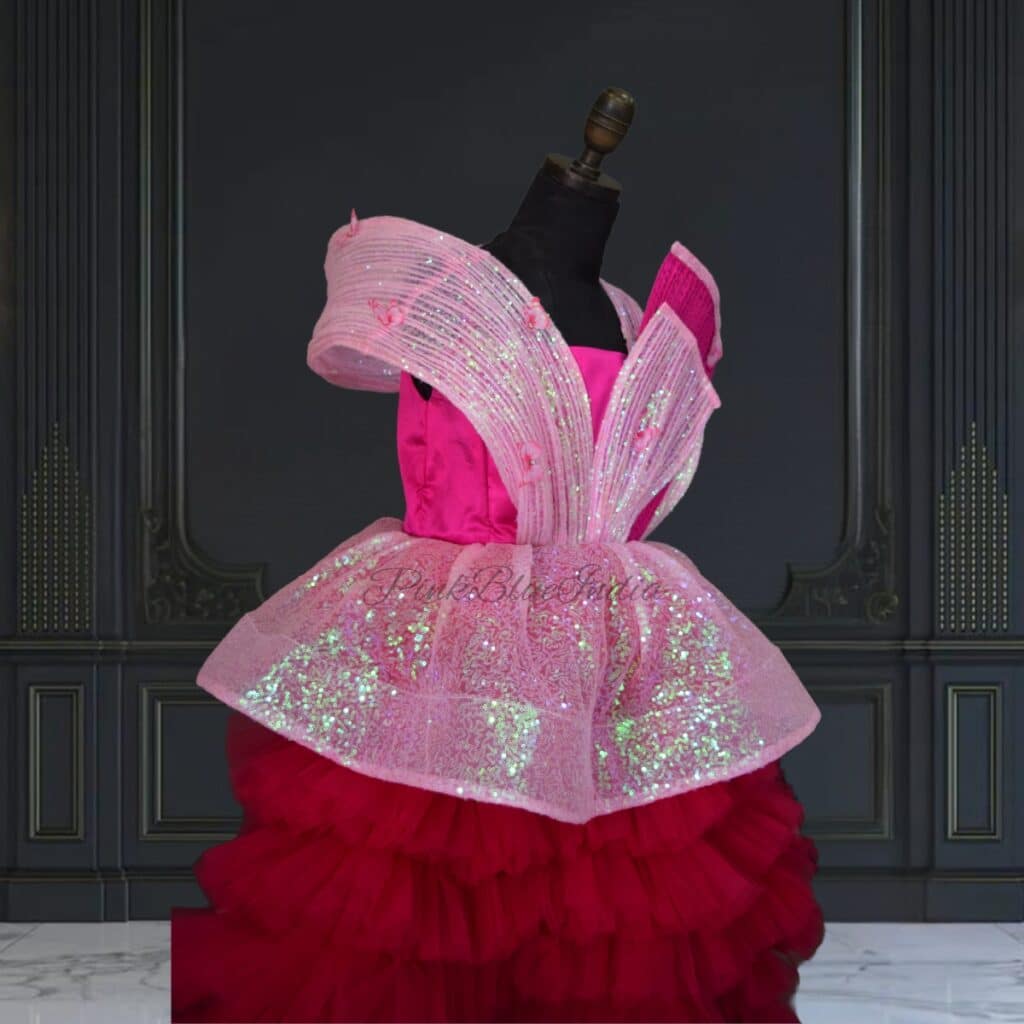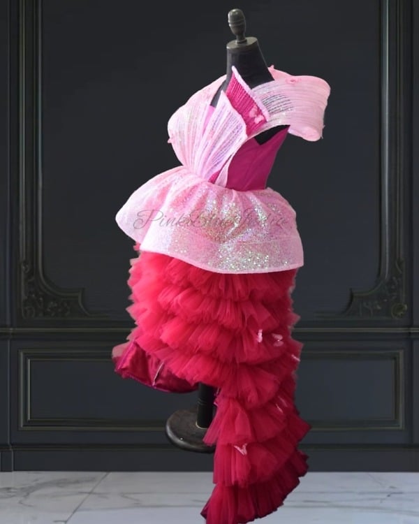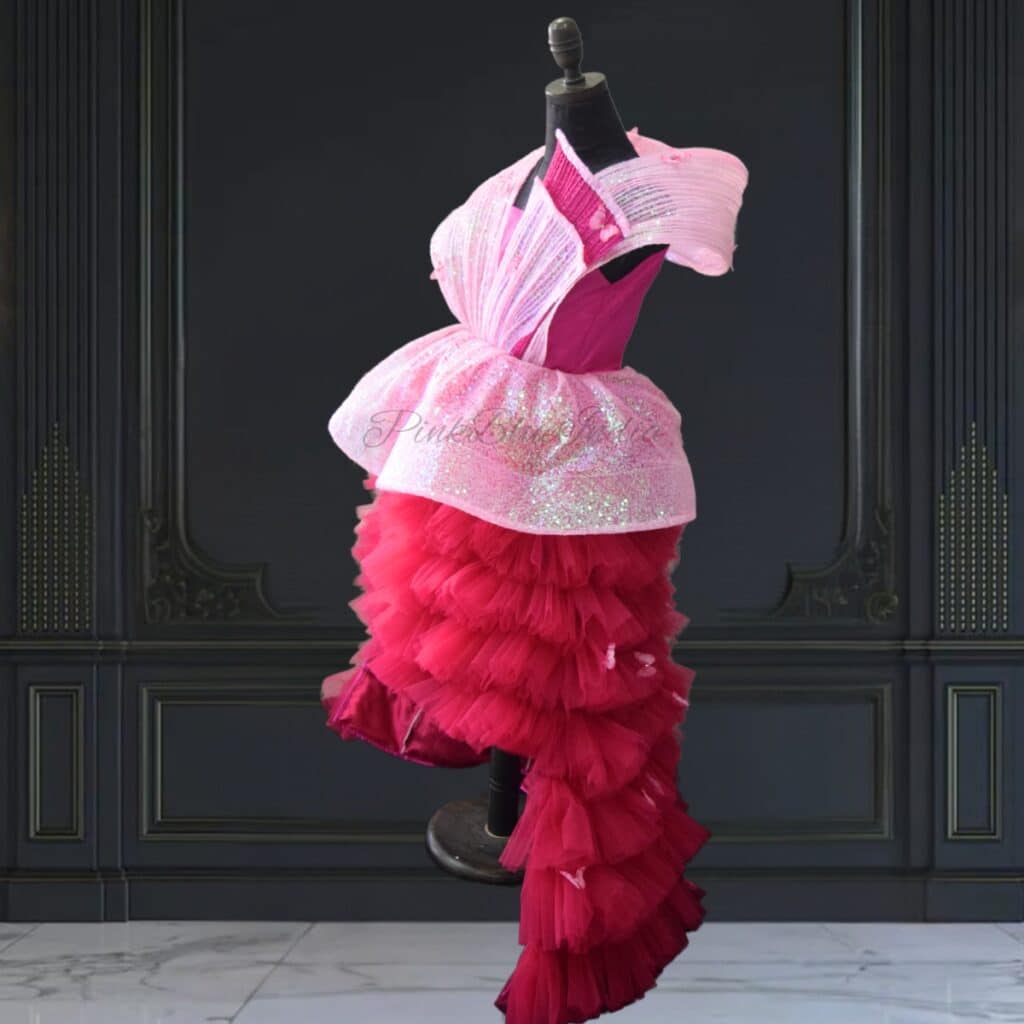 Shop this premium high-low structured dress for girls in beautiful shades of pink. Ideal for weddings, birthdays, and parties.