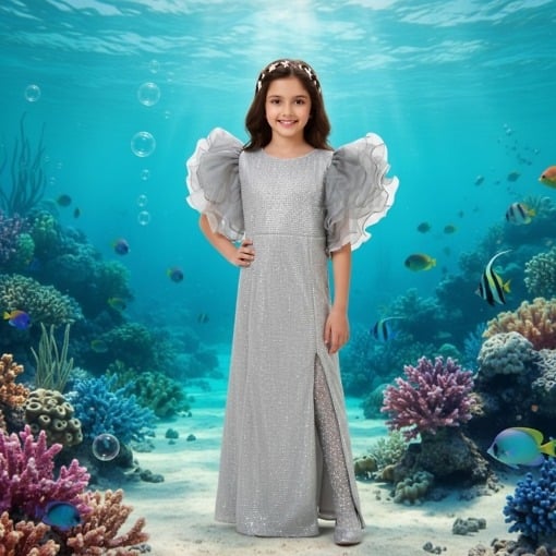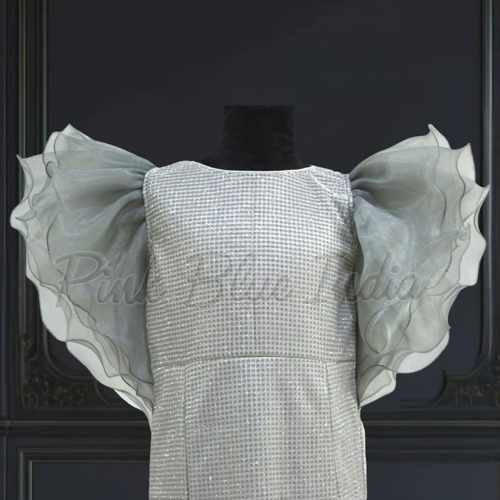 Buy online at PinkBlueIndia, the exclusive and stylish fish cut gown in silver for baby girls. Crafted using shimmery lycra, this fashionable party wear gown for baby girls is an ideal pick for birthday parties and weddings. Give her a completely new look with this dress with stylish sleeves and fit. Not just India, you can also buy it from USA, UK, Australia, Canada and UAE.
