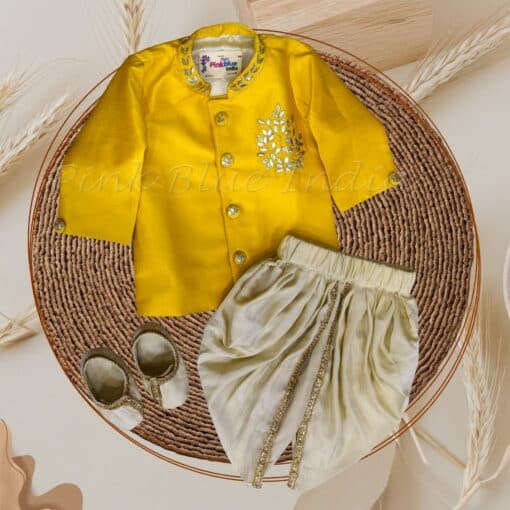 Buy stunning range of new born baby boy gota patti work jacket with dhothi online. Grab your favorite infants ethnic wear today. shop now!
