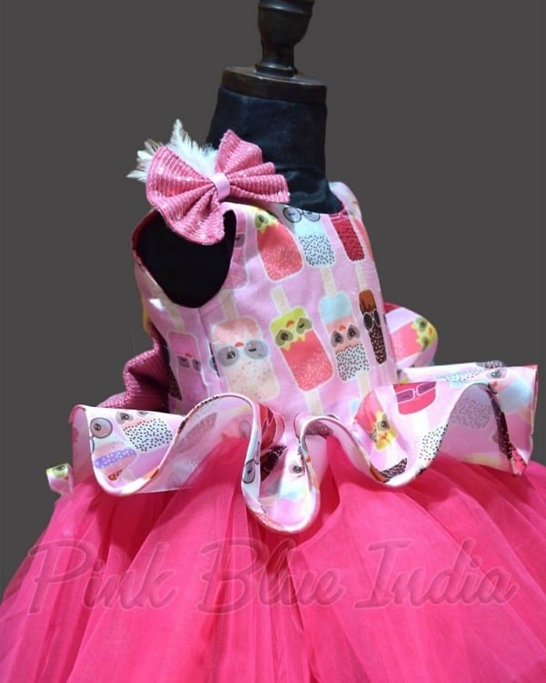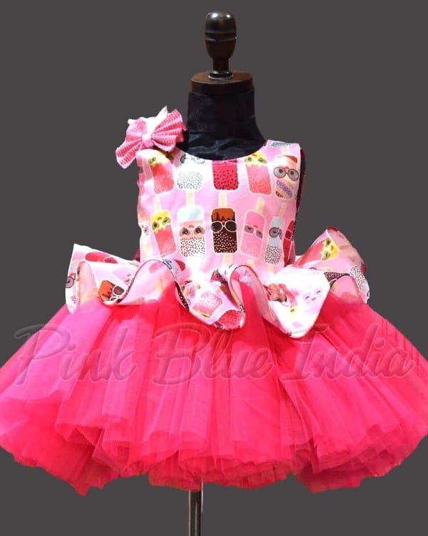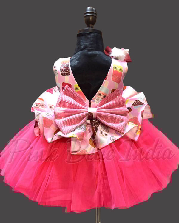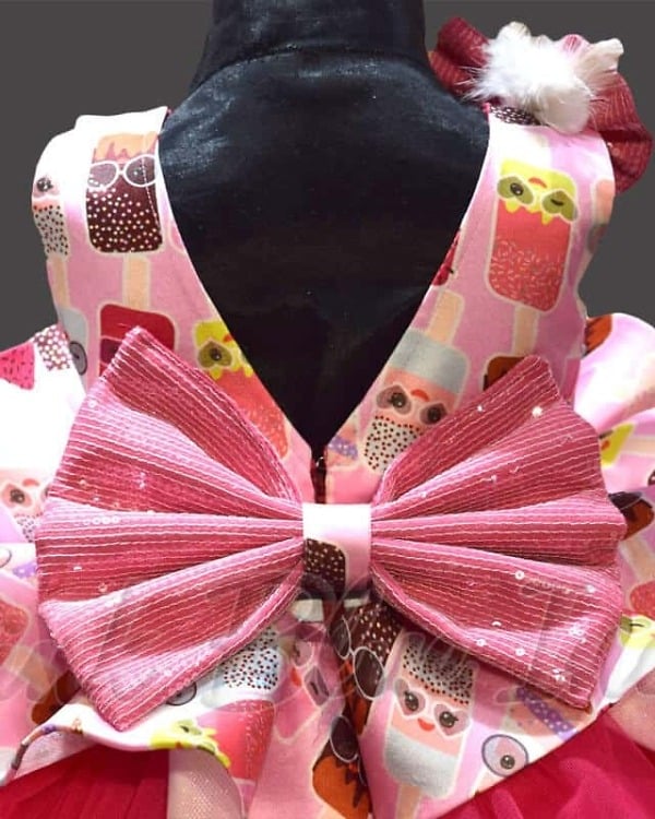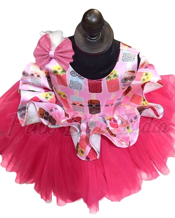 If you are planning a candyland themed birthday for your princess then you certainly need a complementing outfit for her. Have her dress in the pink candyland themed birthday outfit that is too adorable to miss. This peplum style dress is made with satin fabric and comes with a matching head band. Having a printed pink candy bodice with solid flare, it makes a cute outfit for birthdays for girls of age 0-6 months to 9 years. There is a bow on the shoulder that makes it look more chic.