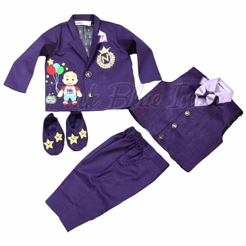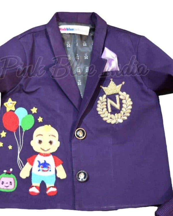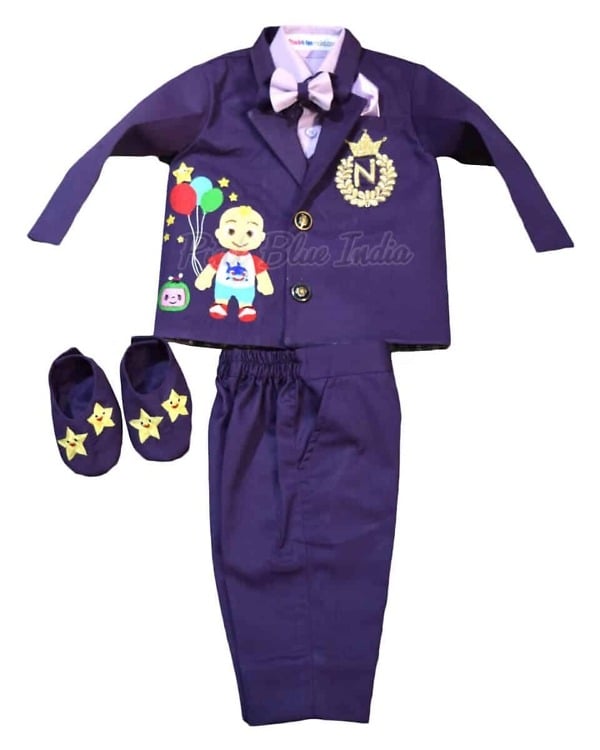 Dressing up is truly fun when it is the Cocomelon theme coat suit to dress up your little boys. Designed especially for baby boys between 1 to 12 years of age, this is an amazing purple and lilac Cocomelon theme outfit comprising of six pieces. What’s even better is that it comes with name initial personalization. Be it the first birthday party or any other special occasion, shop online for the adortable Cocomelon theme outfit.