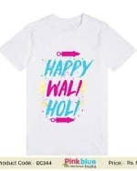 Buy funny white T-shirts for your family, kids and babies for this Holi festival with “Happy wali Holi” print on it. We have a wide range of Holi T-shirts with funny prints and messages on it for you to explore. Select and buy colorful Holi T-shirt for Father, Mother, Family, Best friends, Couple, Brother & Sister, Siblings, kids, baby girl, boy & custom Men/Women Tshirts online. Celebrate this Holi with our unique and special collection of customized Holi Tees. Buy them for your family and friends and enjoy this festival of colors with fun, joy and happiness. We have express delivery in India.