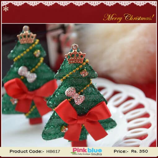 Dress your infant in the smart and fashionable hair pin available at best prices. The red and green colored stylish hair clip comes with a gorgeous Christmas tree for a perfect party look. Buy online this comfortable baby girls designer hair accessory which is a perfect way to dress her for special occasions.