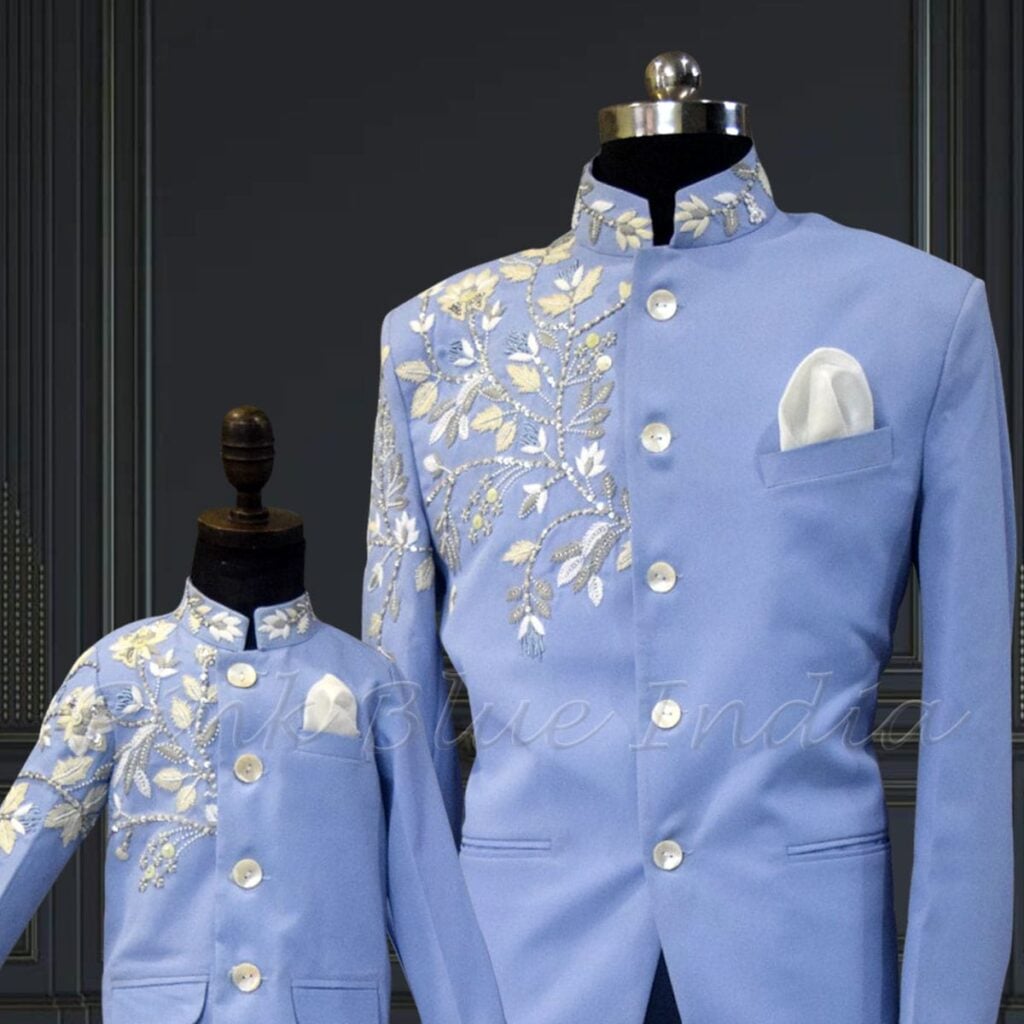 Match your little one with our premium range of father and son Bandhgala Jodhpuri suits. A popular collection for Indian weddings and family occasions.