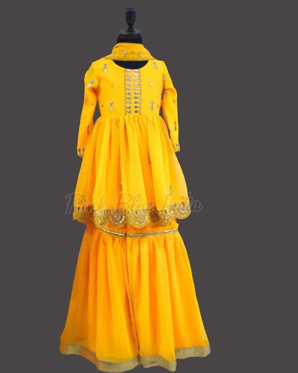 Browse through the collection of latest must-have trends comprising of beautiful Girls Festival Wear, ranging from Indo western wear to regal Indian ethnic girls wear, Indo western gowns for baby girl, Peplum Top with Black Skirt, kids saree style gown for wedding, tunics, long designer dress gown, bottoms, suit sets, Indo western Kurtis Kurtas, Girl Sharara with crop top online, Toddler Baby Girls One Shoulder crop top, ethnic long jackets with pants, Party Wear Indo Western Gowns with Pre Stitched Dupatta online, Tunics to redefine fashion for all seasons.