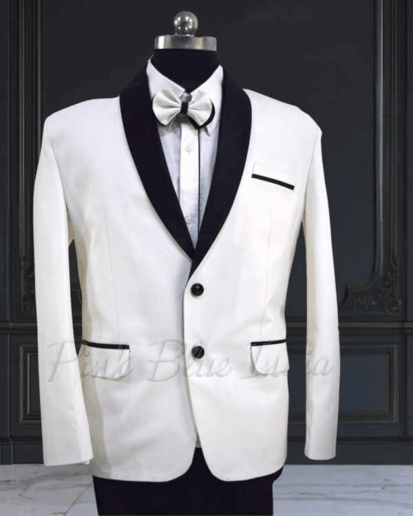 White colored matching tuxedo was purchased for my Husband and my son. This tuxedo outfit is so comfortable and shipped quickly.Thank You