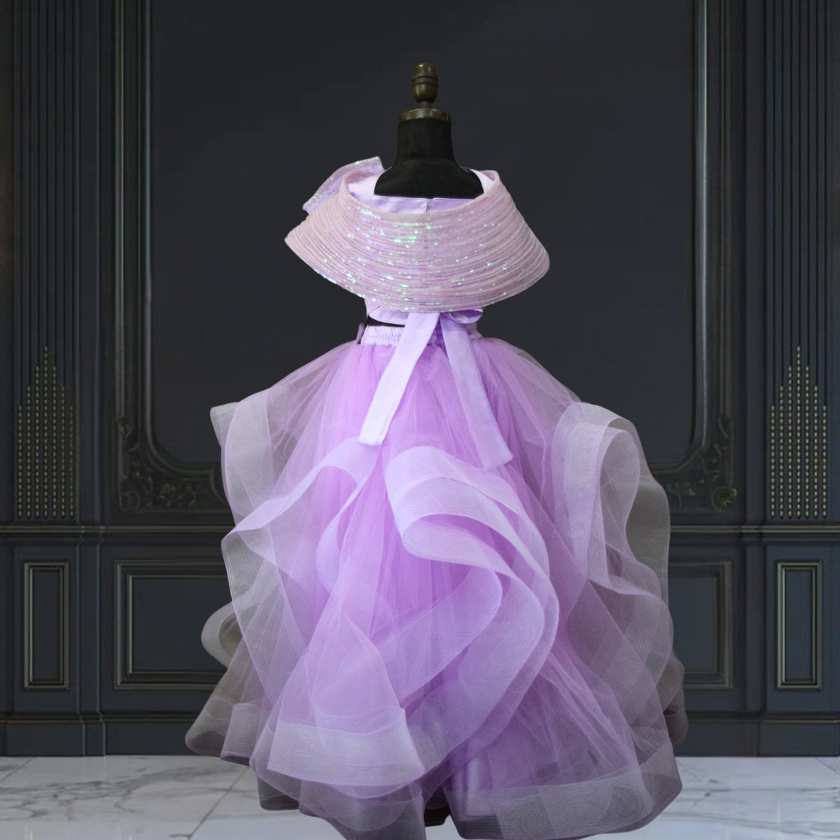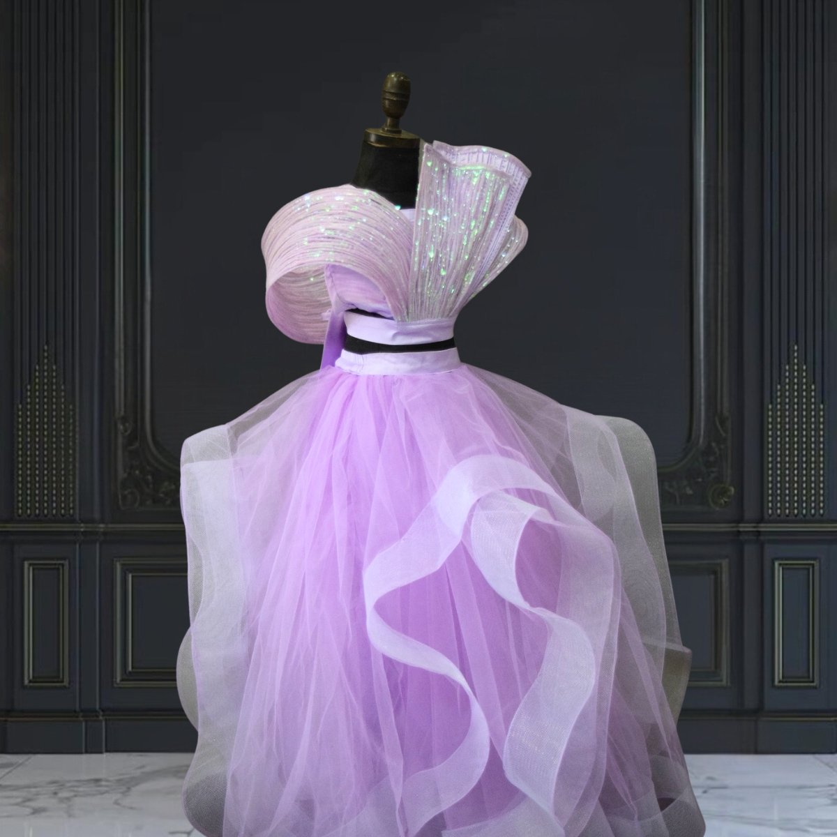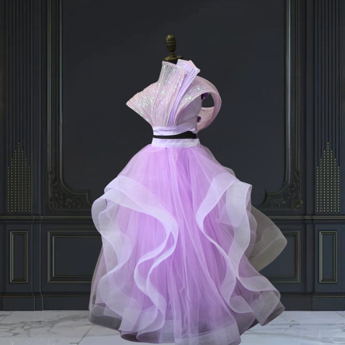Exclusive designer skirt and crop top for girls with structuring and ruffled detailing. Perfect for luxury birthdays, events and celebrations.