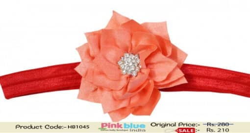 Dress your infant in the smart and well-fitted hair band available at best prices. The smart red colored band comes with a beautiful diamond embellished orange flower on the top. Buy online this comfortable and exclusive hair accessory for your little princess and dress her beautifully for every outing.
