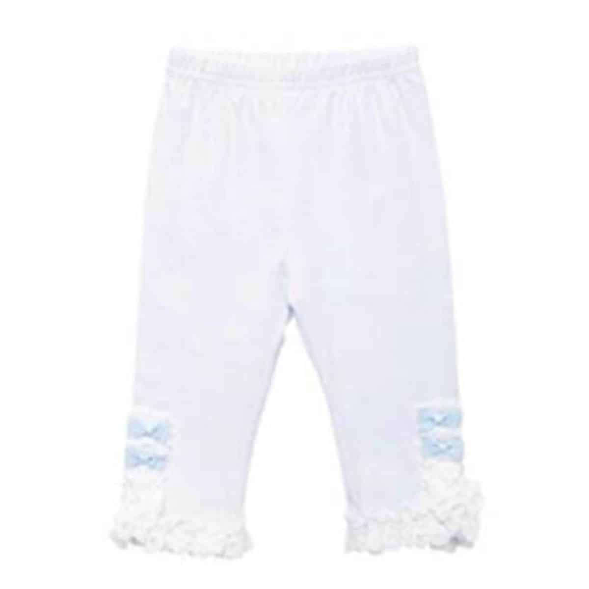 Designer White Leggings for Toddler Girls with Blue Bows