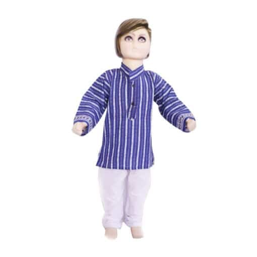 Elegant and comfortable cotton ethnic wear for kids is a must pick for your baby boy this diwali season. The lavender and white stripes kurta with white churidar pajama is an ideal traditional dress for your young prince. Shop online in India for this ethnic kids wear and add more Indian cotton ethnic clothes to his collection.