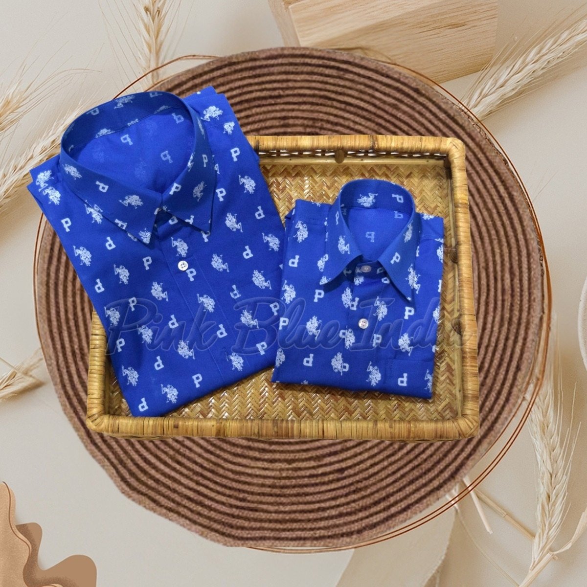 Go for these stylish father and son shirts in blue color. Made using Raymond’s fabric, these dad and son shirts come with a unique print. Shop online for these cotton matching shirts for dad and son combo that is available in a wide range of sizes that include 4-5 to 8-9 years for the boys and XS to XL for the dads to have them dressed in this Jaipuri hand block printed shirt for the parties.