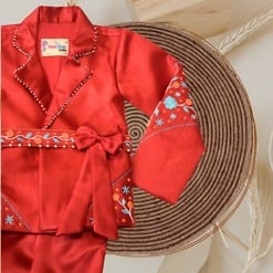 Make her look elegant for the next celebration. Hand-embroidered top and pants set for girls. Perfect for weddings and festive functions.