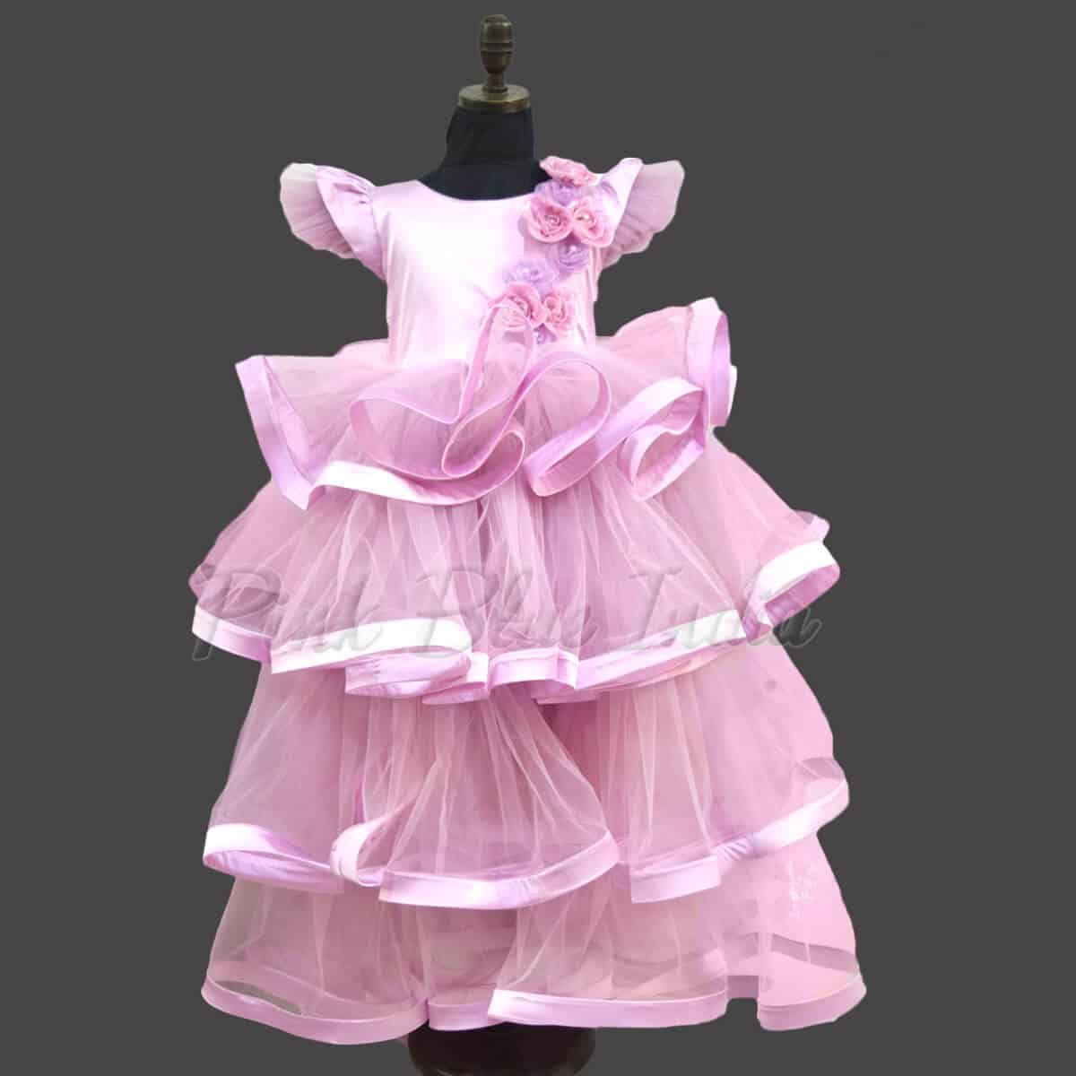 Lavender Multi Layered Full Length Party Wear Gown