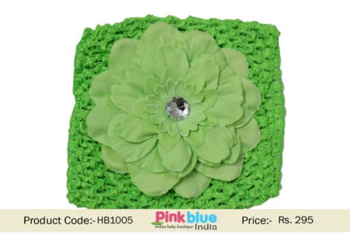 Buy online in India the pretty looking comfortable hair band in vibrant green color. This stretchable crochet hair accessory comes with a big flower. Dress your baby girl in this stylish kids headband which will beautify the simple look of the hair of your baby girl by making her look more fashionable and stylish.