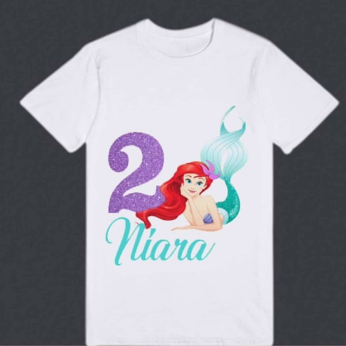 When your little girl turns 2 years old, dress her up in this adorable T-shirt which comes with an ease of customization. Printed in sparkling glitter “2” with a mermaid and her name printed on it. You can have it made for any other age or with any other name for a pretty look on her special day.