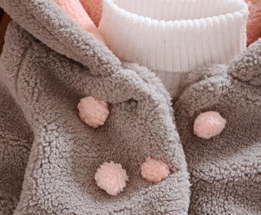 Warm grey colored winter jacket for baby girls comes with a cute rabbit face patch. With an adorable hood with ears attached, this winter coat comes with pink lining on the inside. Made with best fabric, this soft and cozy outerwear for toddlers is perfect for your baby to dress her for birthdays and weddings distinctively. Shop online in India this designer woolen dress for kids of age 1-2 year, 2-3 years, 3-4 years, and 4-5 years.