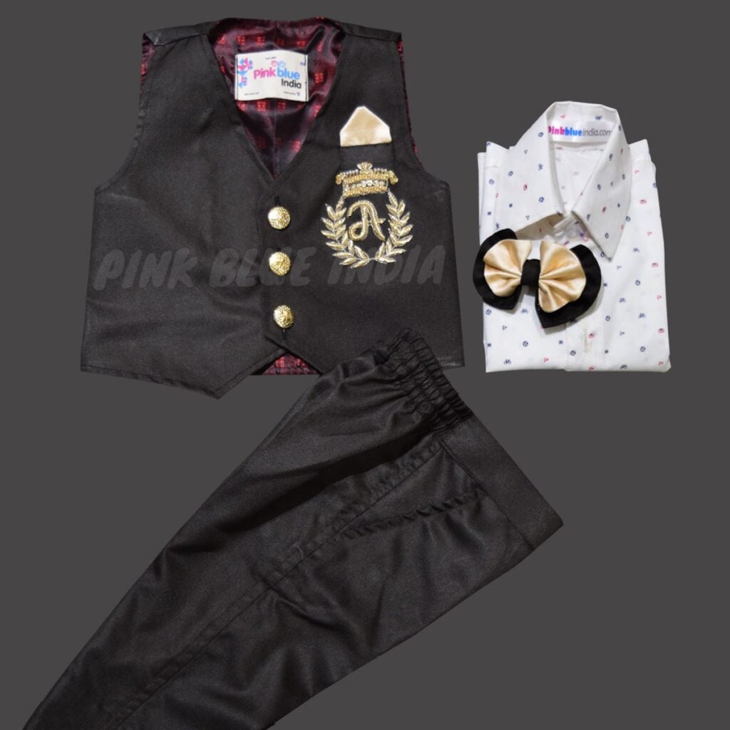 Dress your little one in an exclusive black waistcoat set for their birthday. A stylish and classy outfit to make their special day even more memorable.