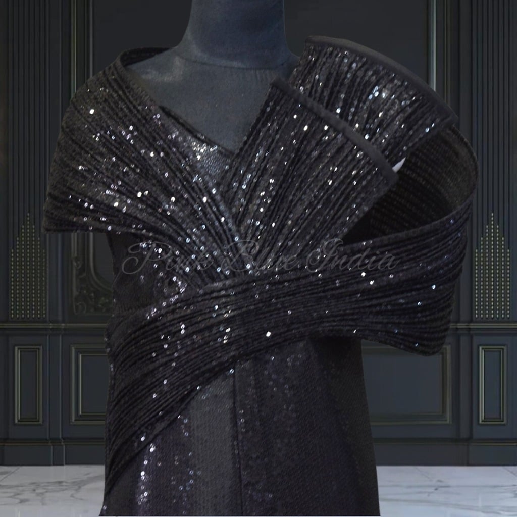 Looking for fantastic outfit for your daughter birthday or family wedding dress. Buy custom made fish cut gown with black structuring.
