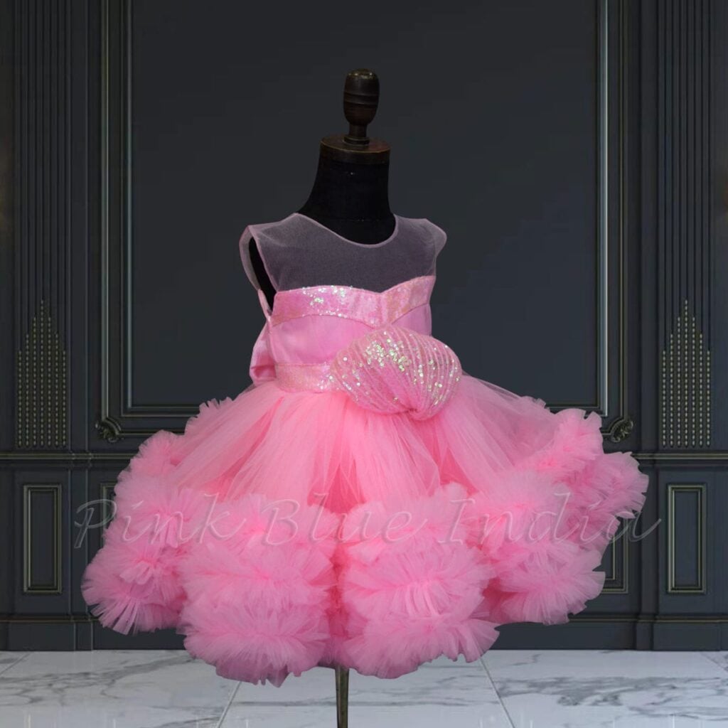 Shop Frilled Barbie dress for baby girls. This pink frilled knee-length dress is ideal for ages 0-12 years, perfect for birthday parties and special occasions.