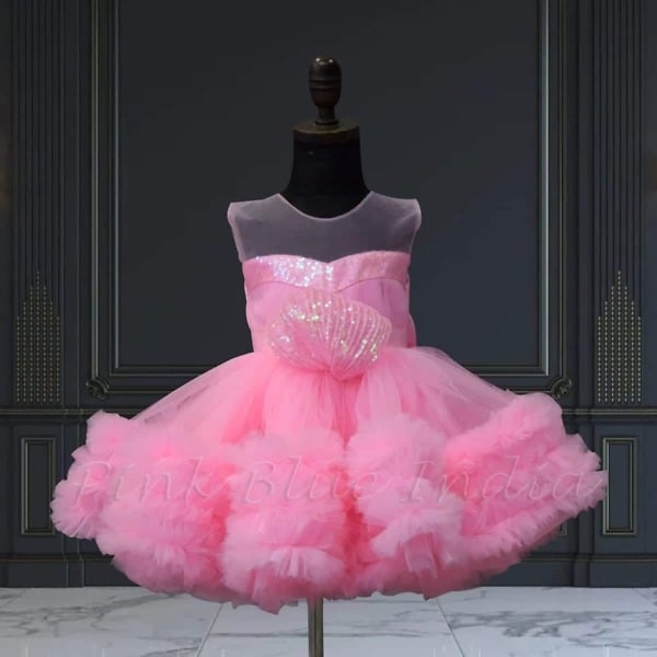 Shop Frilled Barbie dress for baby girls. This pink frilled knee-length dress is ideal for ages 0-12 years, perfect for birthday parties and special occasions.