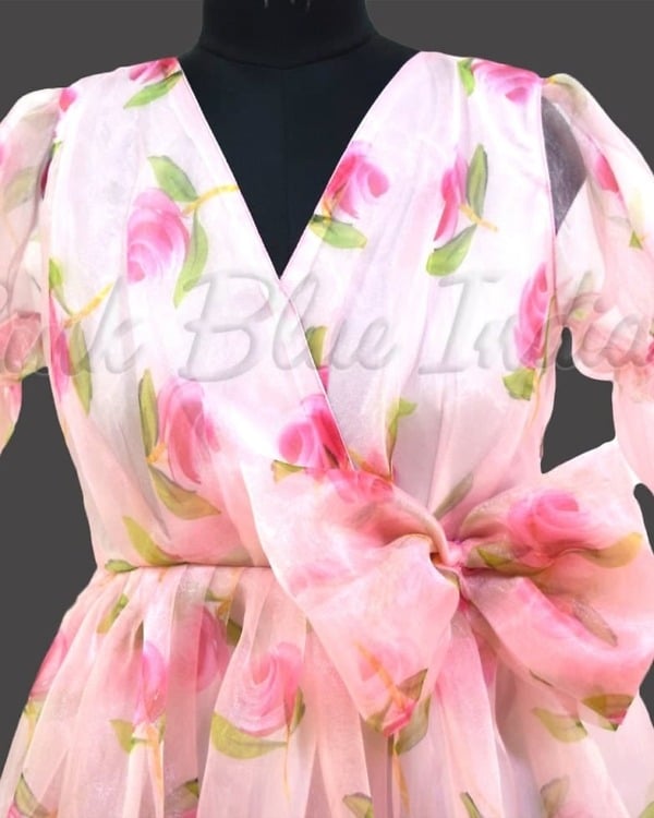 This floral organza dress is so elegant! The print is delicate, and the fabric is light and comfortable.