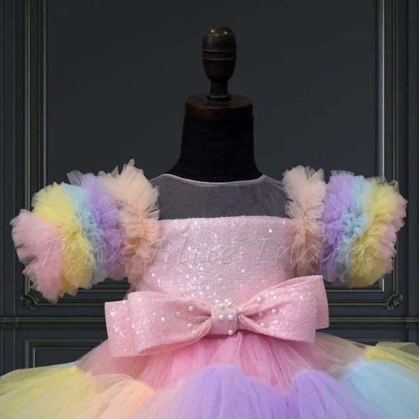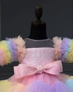 Colorful and unicorn theme based short dress for girls. Order a unicorn theme birthday outfit online for delivery worldwide.