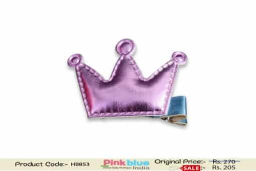Buy online in India the gorgeous looking comfortable hair clip. This designer pin comes in purple color with a pretty pink colored crown motif on top. Dress your baby girl in this exquisite hair accessory for kids which will beautify the simple look of the hair of your cute little toddler girl. This is a perfect way to dress her locks for party.