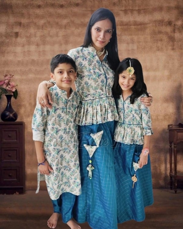 We wore this on a family function and it was a hit. Indian Family Matching Traditional Dresses for Celebration
