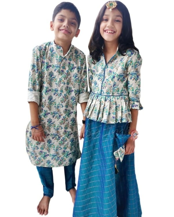 If you are in search of best Indian family dress set for birthday parties then shop online for this lovely family dress set for wedding that is designed for kids of age 1 to 16 years along with XS to XXL size for adults. This family combo traditional dress online in blue is made of fine quality silk and makes a stylish family matching ethnic wear to celebrate weddings and festive occasions together. This matching dress for family is a blend of comfort and style.