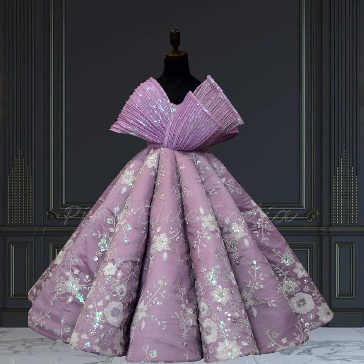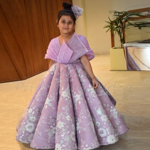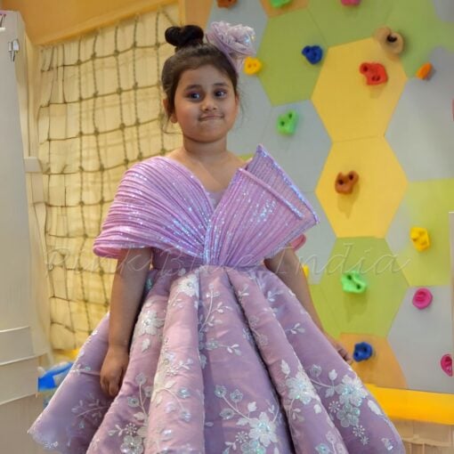 Lavender Birthday Party Wear Dress for girls, featuring a beautifully structured gown design made with net fabric. Perfect for birthday party and special occasions.